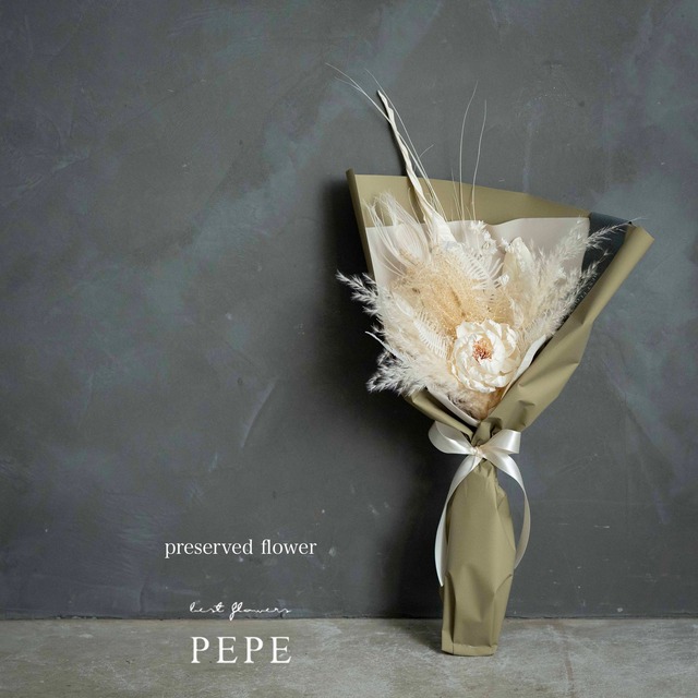 やさしい光を束ねたような、 ナチュラルカラーのブーケ。 生成りやアイボリーを基調に、 繊細な質感の花材を重ね、 ふわりと空気を含むように仕上げました。 主役のお花のまわりには、 軽やかな動きのある素材を添えて、 見る角度によって表情が変わる、奥行きのあるデザインに。 華やかすぎず、控えめすぎない。 そんな絶妙なバランスなので、 お誕生日や記念日の贈りものはもちろん、 ご自宅にそっと飾る“自分への花”としてもおすすめです。 ラッピングまで含めて完成したブーケは、 そのままお渡しできる仕様。 大切な気持ちを、やさしく包んで届けます。 【おすすめのシーン】 ・誕生日 / 記念日 ・結婚祝い / 新生活のお祝い ・インテリアとして ・自分へのご褒美に プリザーブドフラワーのため、 お水換えなどのお手入れは不要です。 美しい状態を長くお楽しみいただけます。 メッセージカードの代筆も承ることが可能ですので、 ご希望ございましたら購入画面の備考欄にご記入いただきますようお願いいたします。 (例.●御祝 ○○株式会社 ●オープンおめでとうございます ●お誕生日おめでとう ●いつもありがとう ●末永くお幸せに ーサイズー 高さ 約60cm 奥行 約20cm 横幅 約38cm ※プリザーブドフラワーは直射日光を避けた、湿気の少ない風通しのいい場所の保存して頂ければ半永久的に飾ることができます。 ※画像はイメージです。お色味に変更はありませんが、花材は変更になる可能性があります。 ※梱包料を頂く為、合計金額は店頭価格と異なります。ご了承下さいませ。 ブーケ ナチュラルブーケ ドライフラワー アーティフィシャルフラワー ドライフラワーブーケ ホワイトブーケ アイボリーブーケ ナチュラルフラワー 花束 花ギフト フラワーギフト 誕生日ギフト 記念日ギフト 結婚祝い 新生活 インテリアフラワー ナチュラルインテリア 大人ギフト おしゃれギフト FLOWER SHOP PEPE flower shop pepe