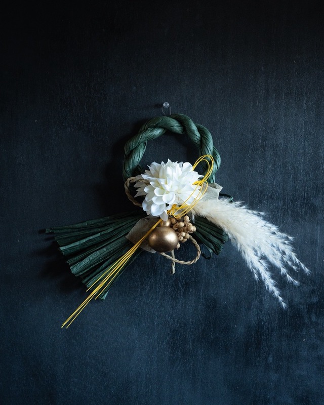 ※2025年11月中旬〜2025年12月下旬発送予定 白のダリアを主役にした、深みのあるグリーンが印象的なお飾りです。 縁起のいい金のひょうたんや水引、たくさんの実ををあしらい、 古き良き日本の伝統を感じつつも現代の暮らしに寄り添った雰囲気を感じさせる作りとなっています。 水引のまっすぐなラインとパンパスグラスのやわらかな曲線の対比が魅力的です。 新しい年が皆様にとって幸多き一年となることを祈ってお作りしました。 PEPEオリジナルのお正月飾りで新年を迎えられてはいかがでしょう。 こちらの商品は予約商品となり、配送は11月中旬以降となります。 お正月飾りは、お正月に訪れる年神様をお迎えするための目印であり、 年神様に滞在していただくための依り代です。 ※年神様は1歳分の年齢とその年の幸運を授けてくださる神様です。 飾り始める時期は12月13日以降なら、いつ飾り始めてもよいとされています。 飾ってはいけない日にちは下記の通りとなります。 ・12月29日_二重苦につながるため ・12月31日_一夜飾りになるため -サイズ- 高さ 約25cm 幅 約37cm ※全て手作りのため、個体差がございます。 ※無くなり次第販売終了となります。 ※北海道、沖縄、離島への配送料は別料金となります。 ※すべて一点ものにつき、一度ご購入された商品に関しまして、 不備や不良品でない限り、返品・交換は致しかねますのでご注意ください。 キャンセル不可のため、ご来店可能なお客様は店頭にて現物をお買い上げいただきますようお願い致します。 お正月 お飾り しめ縄 正月飾り ギフト プレゼント 贈りもの お祝い