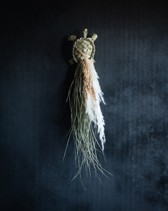 ※2025年11月中旬〜2025年12月下旬発送予定 岡山県産『朝日米』をふんだんに使用して、 巫女の髪を束ねた姿を連想させるような、凛とした佇まいのお飾りが出来上がりました。 束ねた朝日米に和紙をワックスコードで水引のように巻き付け、そこに御守り石を合わせました。 日本は古来より万物に八百万の神様が宿るという信仰があります。 石などの自然物には特にその力も強く、 家内安全の魔除けや幸運を呼ぶ御守り石としてお飾りに用いました。 和紙や稲穂、石といった自然の生命をそのままに感じられ、自然との繋がりを静かに呼び起こすような純朴さがあります。 巫女の祈りのように 新しい年が皆様にとって幸多き一年となることを祈ってお作りしました。 PEPEオリジナルのお正月飾りで新年を迎えられてはいかがでしょう。 こちらの商品は予約商品となり、配送は11月中旬以降となります。 お正月飾りは、お正月に訪れる年神様をお迎えするための目印であり、 年神様に滞在していただくための依り代です。 ※年神様は1歳分の年齢とその年の幸運を授けてくださる神様です。 飾り始める時期は12月13日以降なら、いつ飾り始めてもよいとされています。 飾ってはいけない日にちは下記の通りとなります。 ・12月29日_二重苦につながるため ・12月31日_一夜飾りになるため -サイズ- 高さ 約36cm 幅 約14cm ※全て手作りのため、個体差がございます。 ※無くなり次第販売終了となります。 ※北海道、沖縄、離島への配送料は別料金となります。 ※すべて一点ものにつき、一度ご購入された商品に関しまして、 不備や不良品でない限り、返品・交換は致しかねますのでご注意ください。 キャンセル不可のため、ご来店可能なお客様は店頭にて現物をお買い上げいただきますようお願い致します。 お正月 お飾り しめ縄 正月飾り ギフト プレゼント 贈りもの お祝い