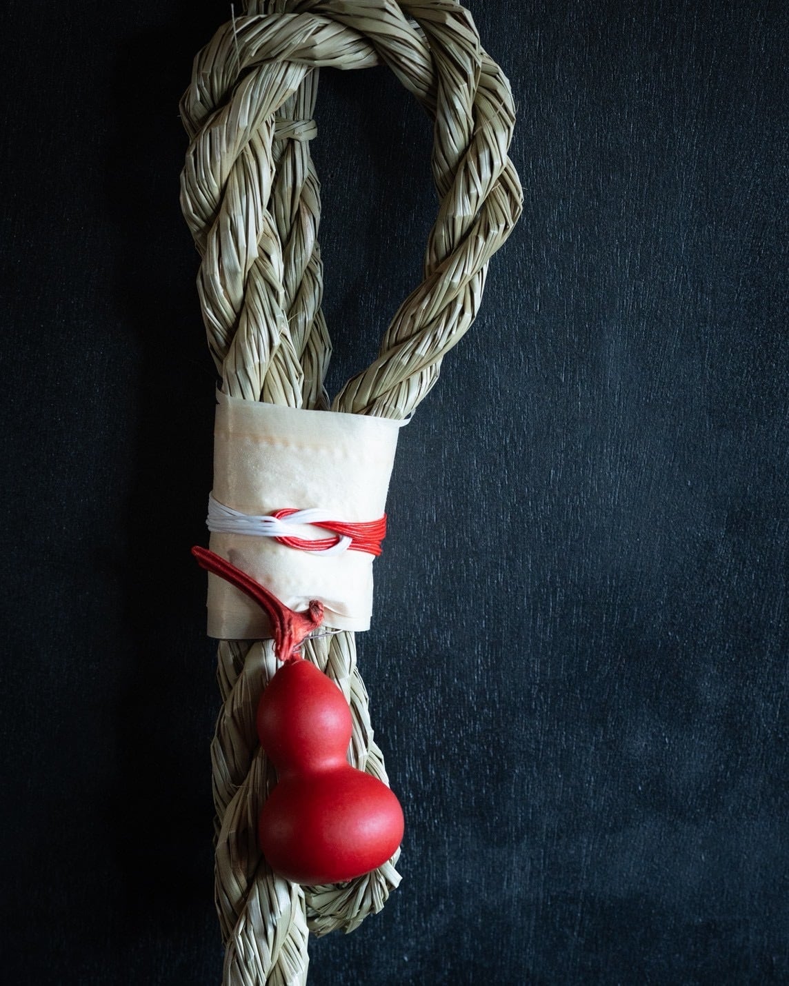 赤のひょうたんをメインにしたシンプルながらも雰囲気のあるお飾りが出来上がりました。