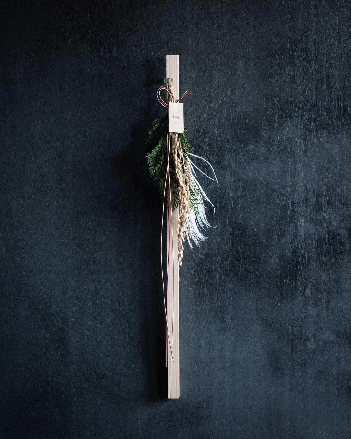 聖木、神木ともされる縁起のいいいヒノキを用いた、静謐なお飾りです。