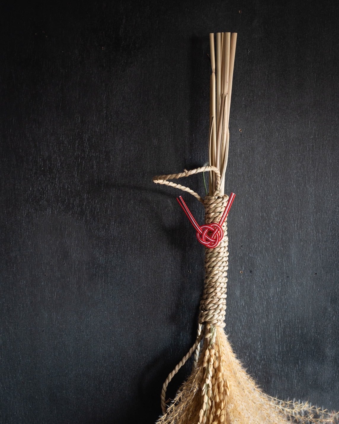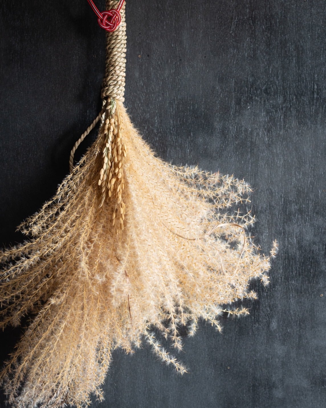 岡山県産『朝日米』とたっぷりのススキを合わせて束ねた、自然素材の柔らかな趣あるお飾りが出来上がりました。