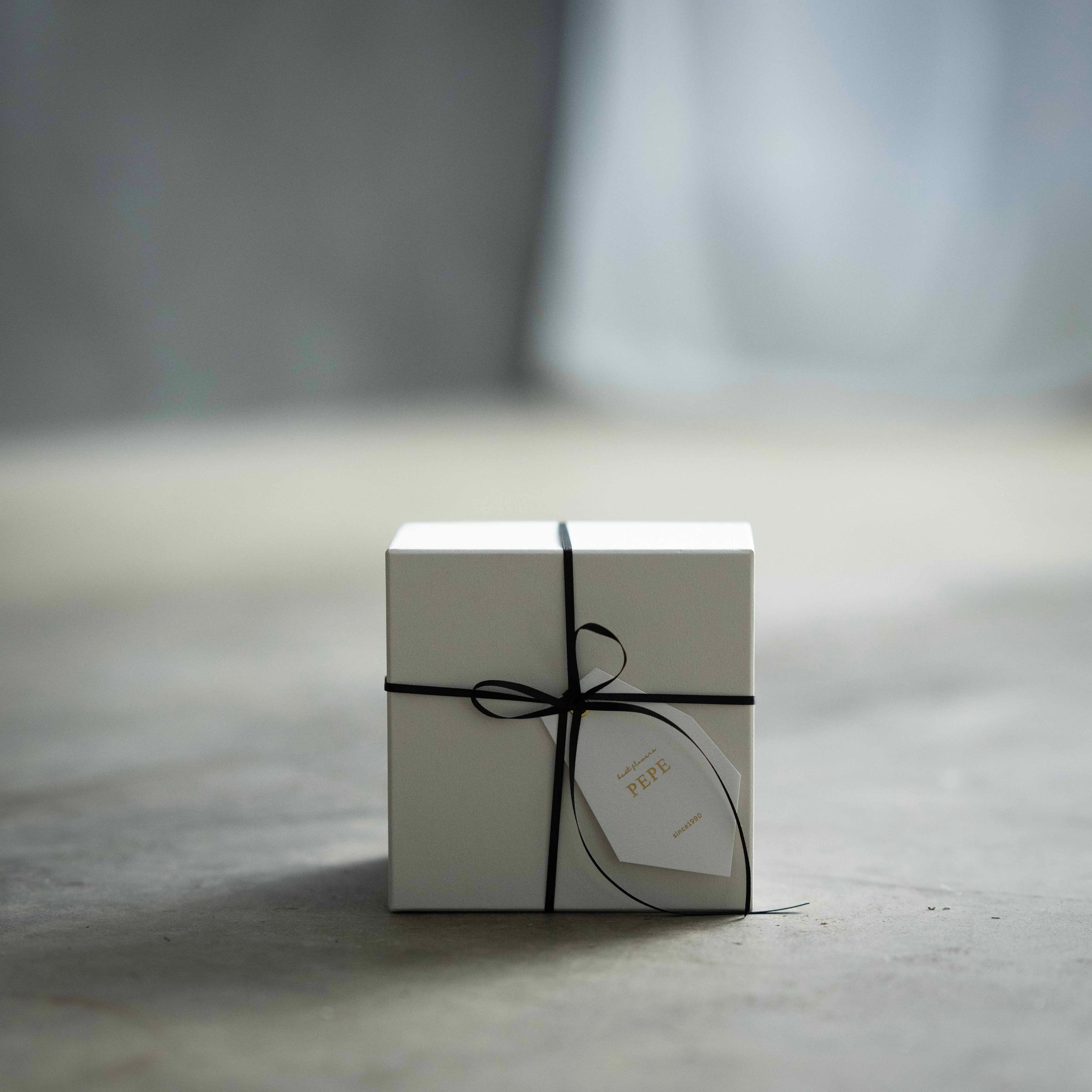 蓋を閉じてリボンをかけた状態でお届けするので、