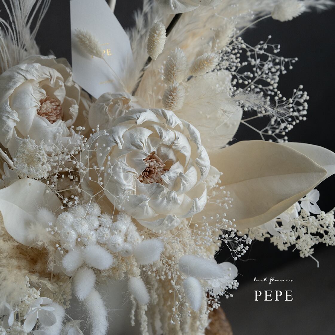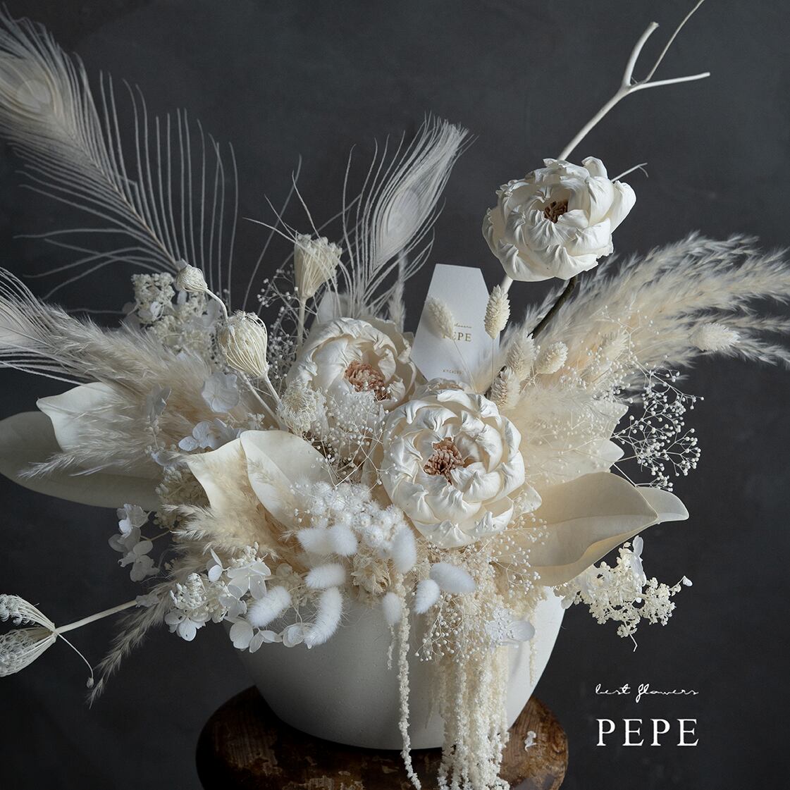 上品なプリザーブドフラワーのアレンジメント|ホワイト・ナチュラル|インテリア・ギフト