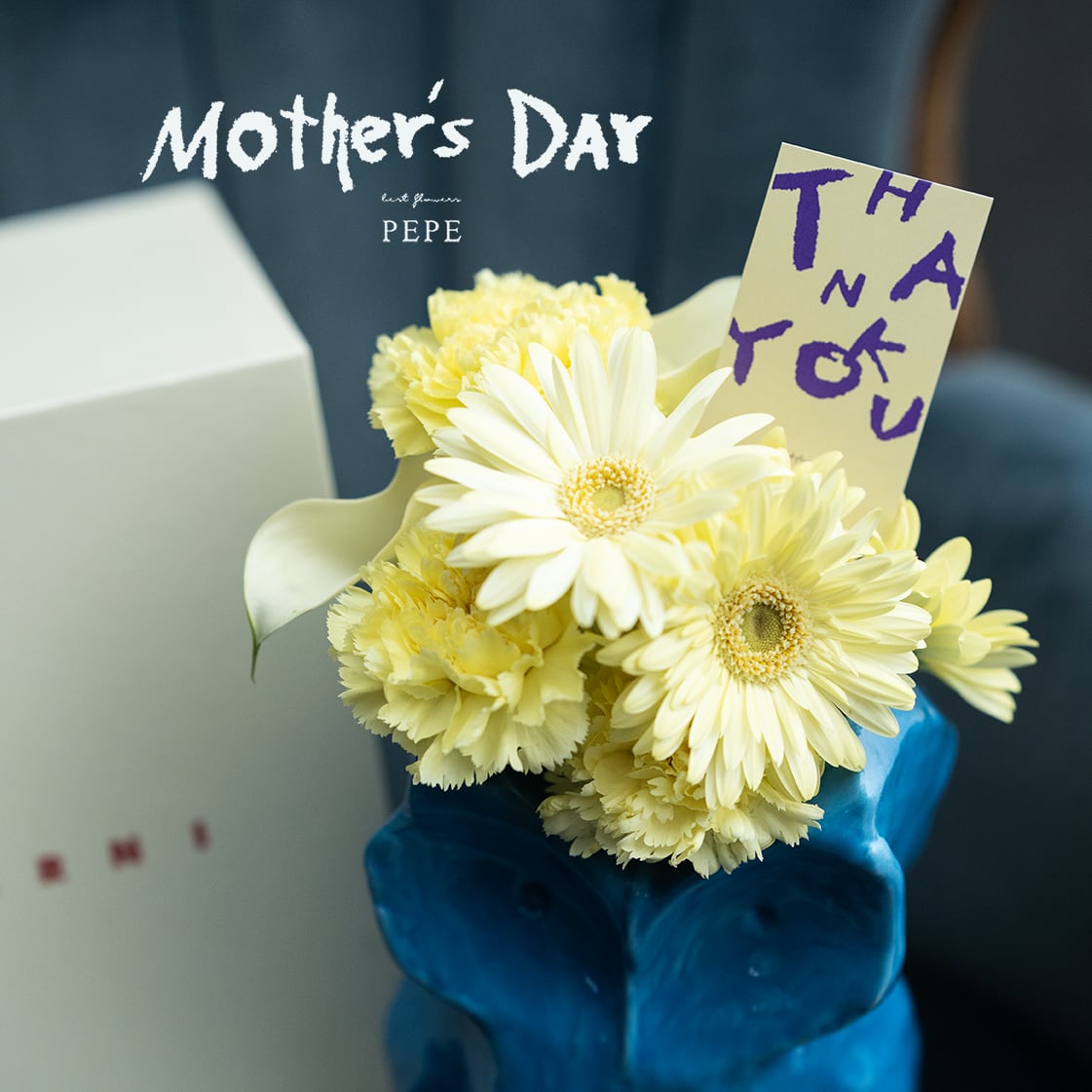 お花はPEPEセレクトの黄色のお花をお届けいたします。