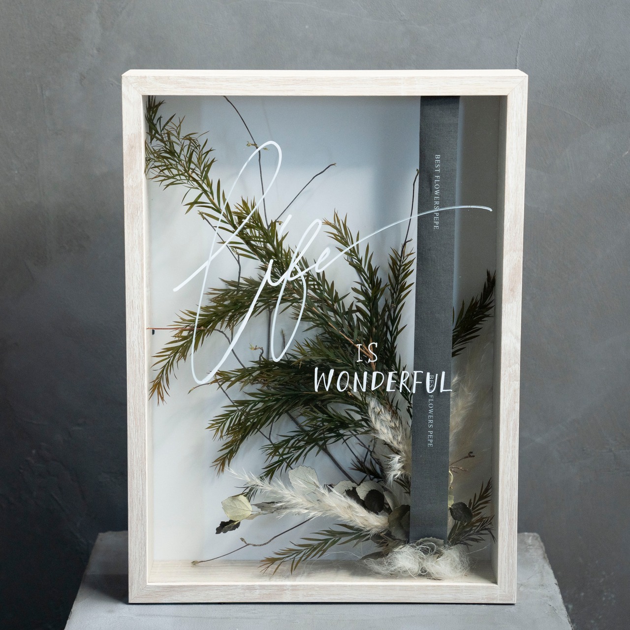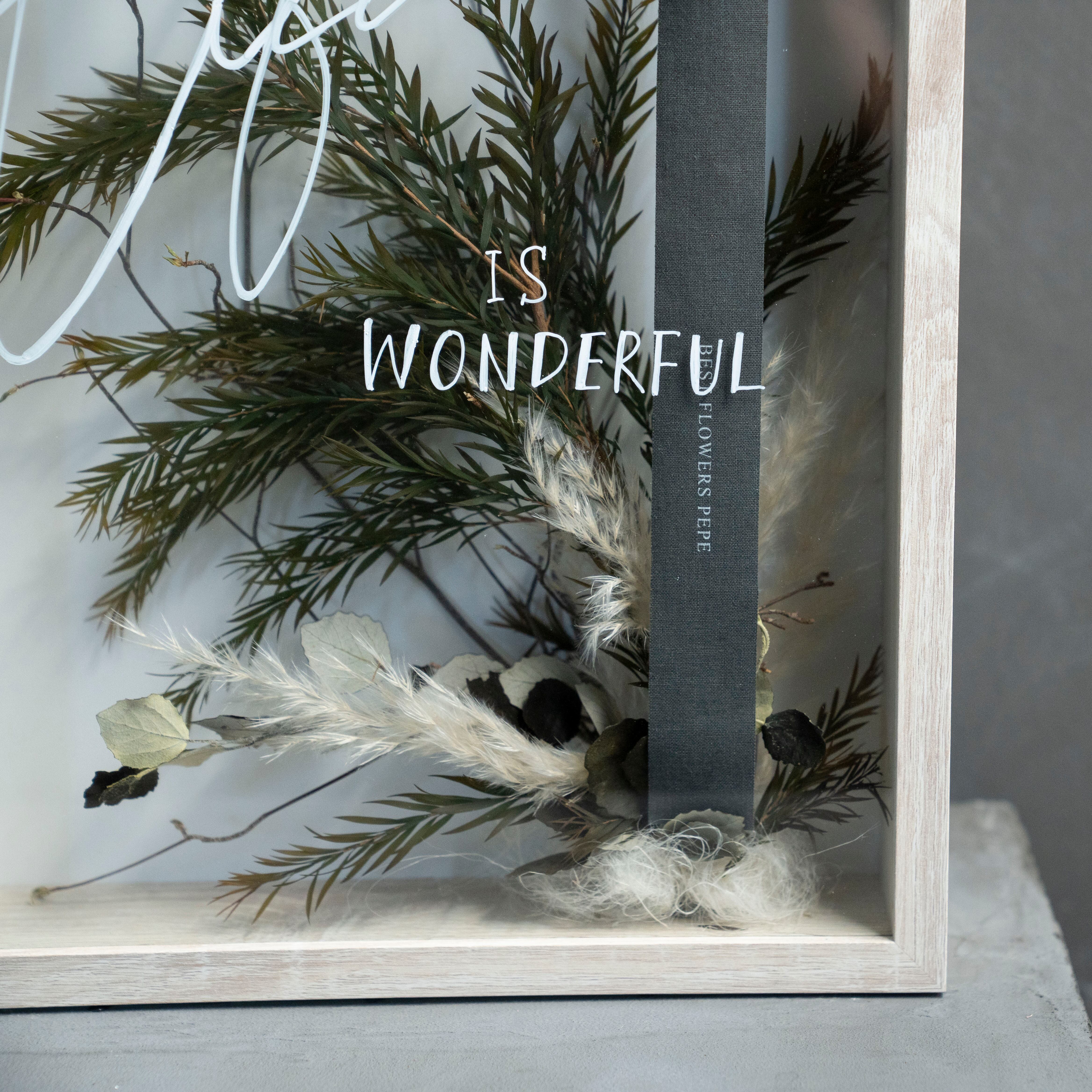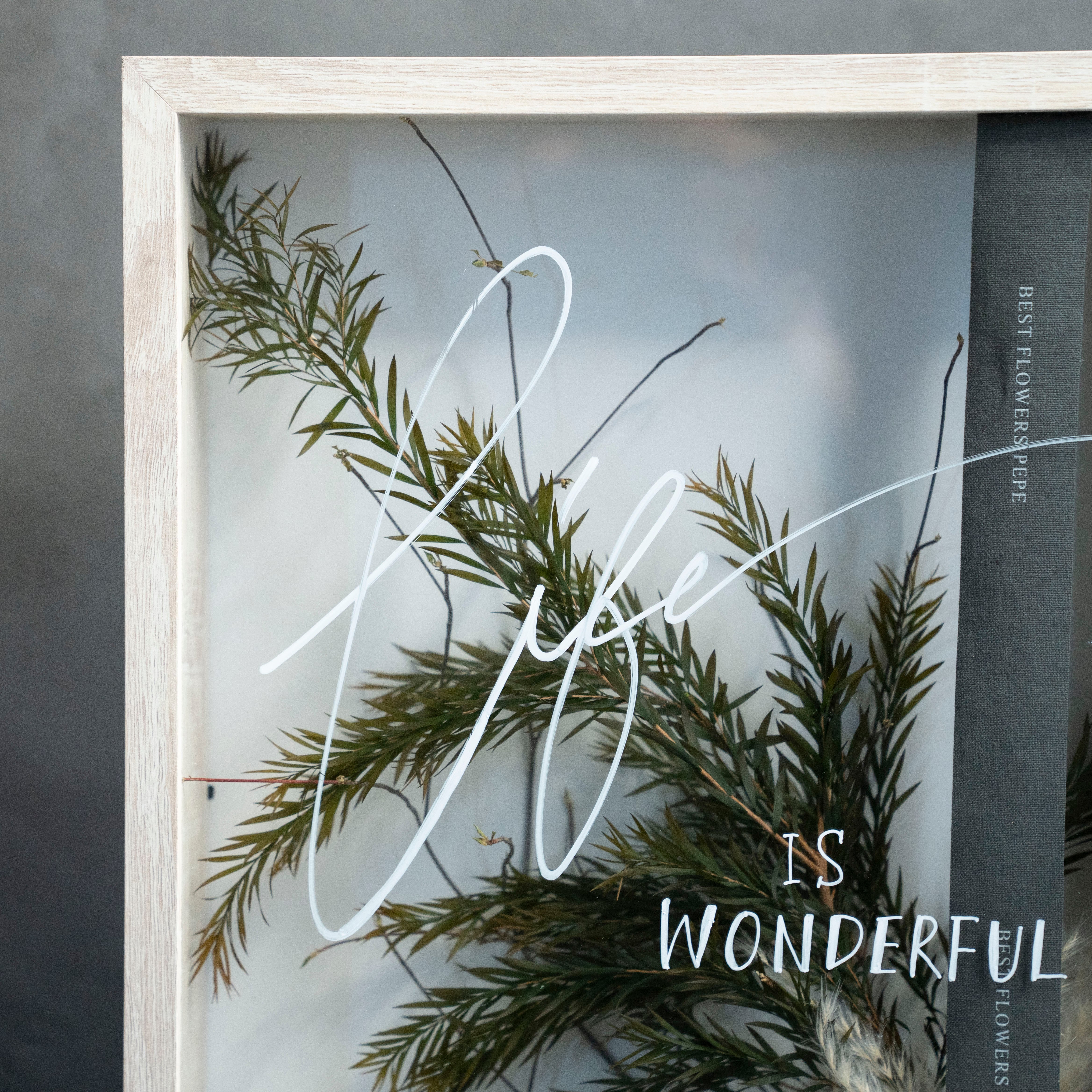 ガラス面には「Life IS WONDERFUL 」の文字を入れています。